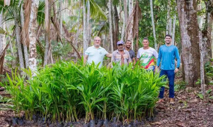 A Secretaria Municipal de Agricultura esteve em quatro comunidades rurais, nesta sexta-feira (10), para cumprir o calendário agrícola de entrega de mudas de açaí para agricultores familiares de Barcarena.